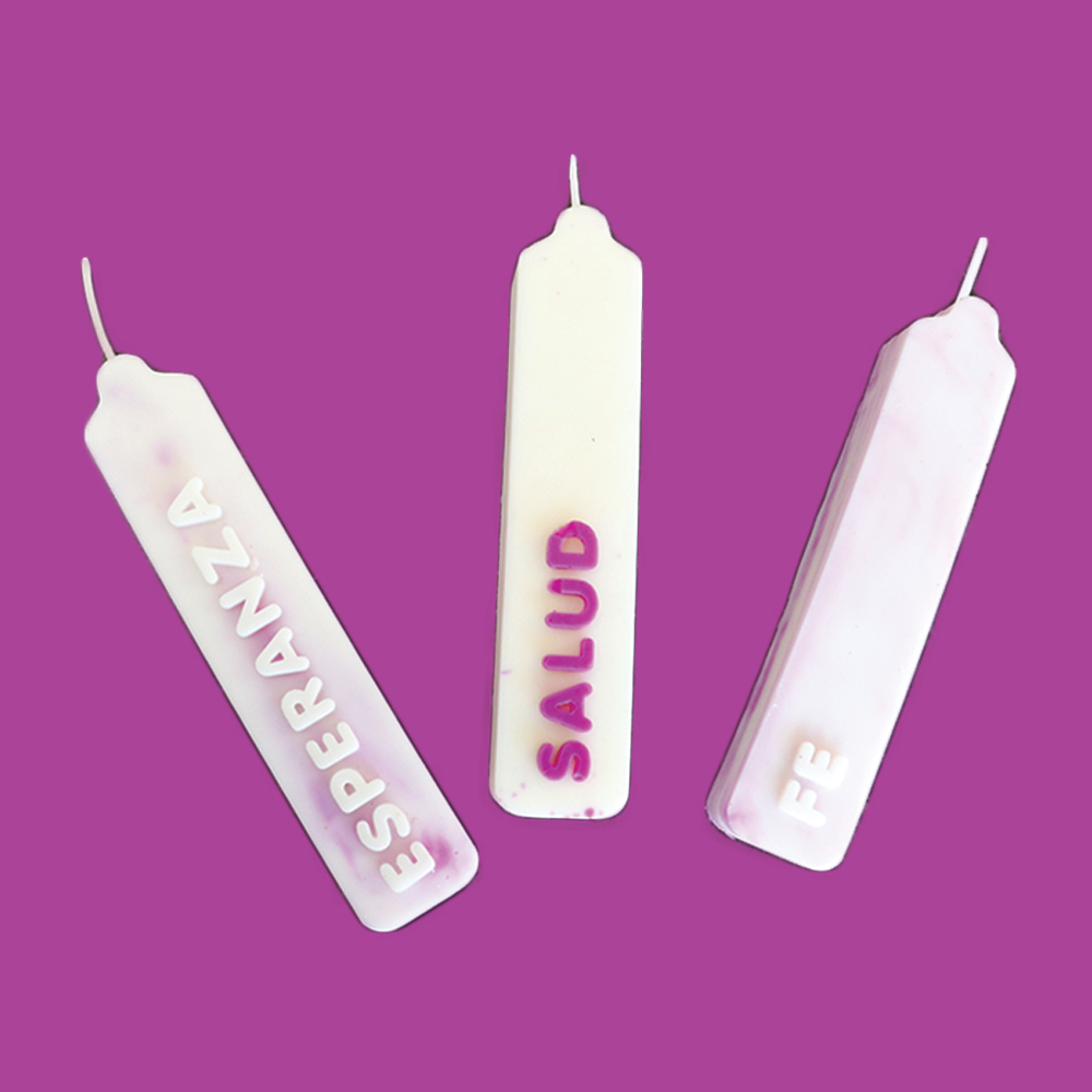 | Medidas | Altura 12 cm – ancho 2cm cada vela. |