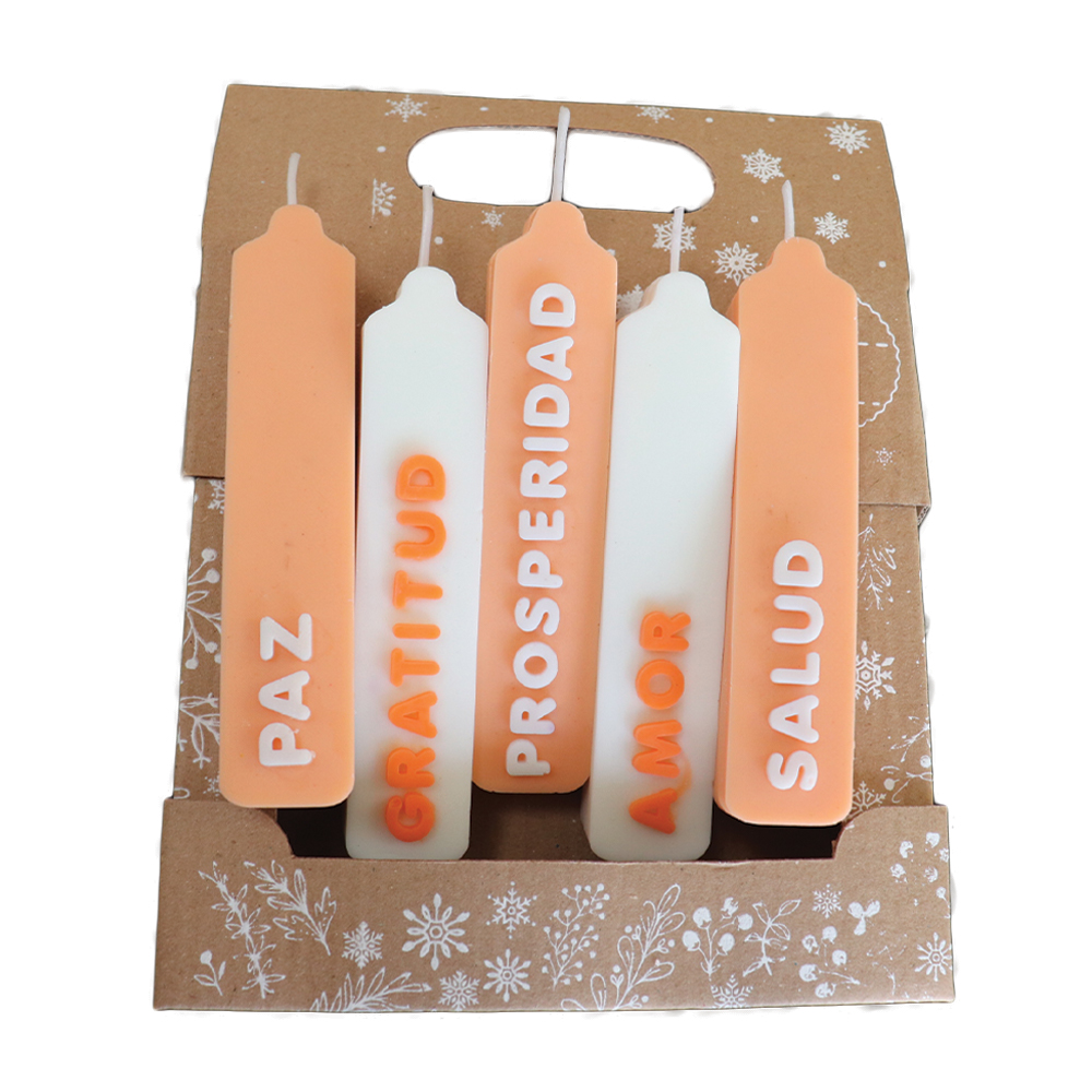 Cada de velas hecha a mano con ceras de origen vegetal, seis deseos( amor/esperanza/fe/familia/gratitud/prosperidad/salud/trabajo). Aromatizadas con un toque navideño (clavo de olor).